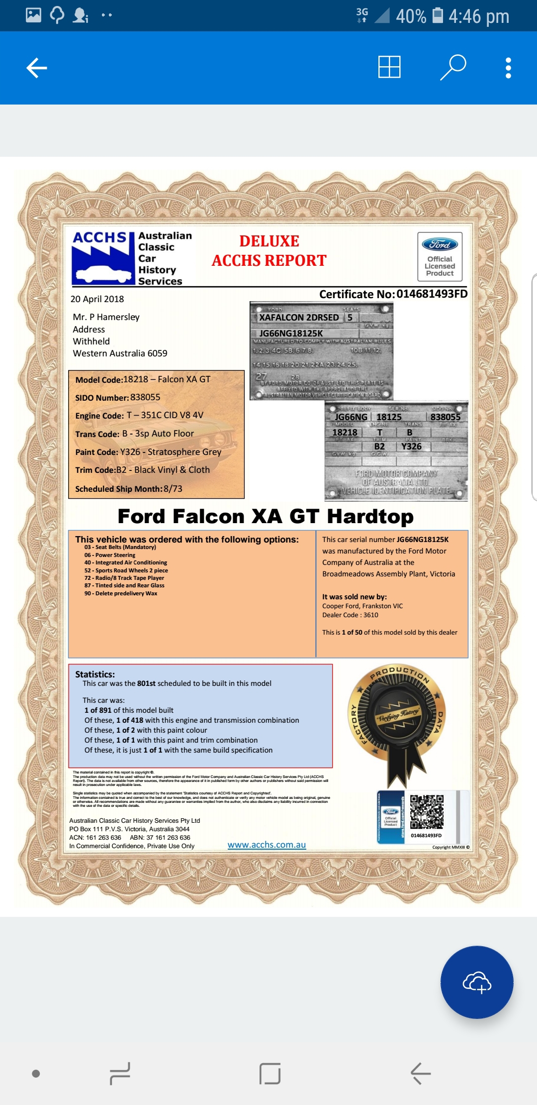 | Owner for last 20 years, currently under full rotisserie restoration (full build thread on “Australian Ford Forums” under “Tex’s Retro XA Hardtop Build”) for last 6 years and hopefully be finished within the next 2 years. The car will NOT be concourse but a little more off beat like it’s owner lol. | |||