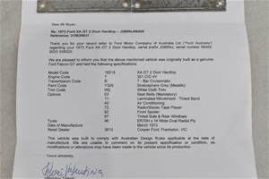 | Factory Options: | 03 - Seat Belts (mandatory) 11 - Laminated Windscreen 72 - Radio Tape Player 46 - ER70H 14 Wide Oval Radial RSW (pre 75)  |